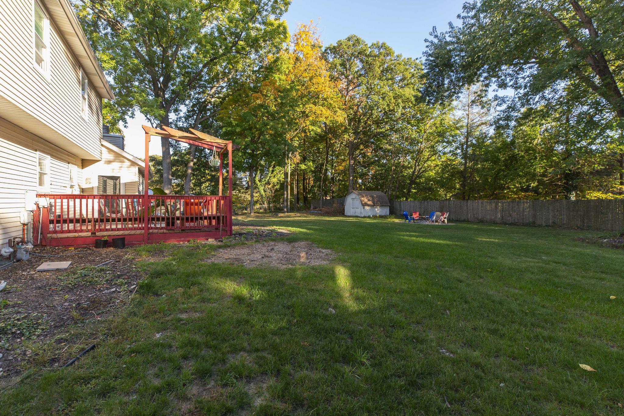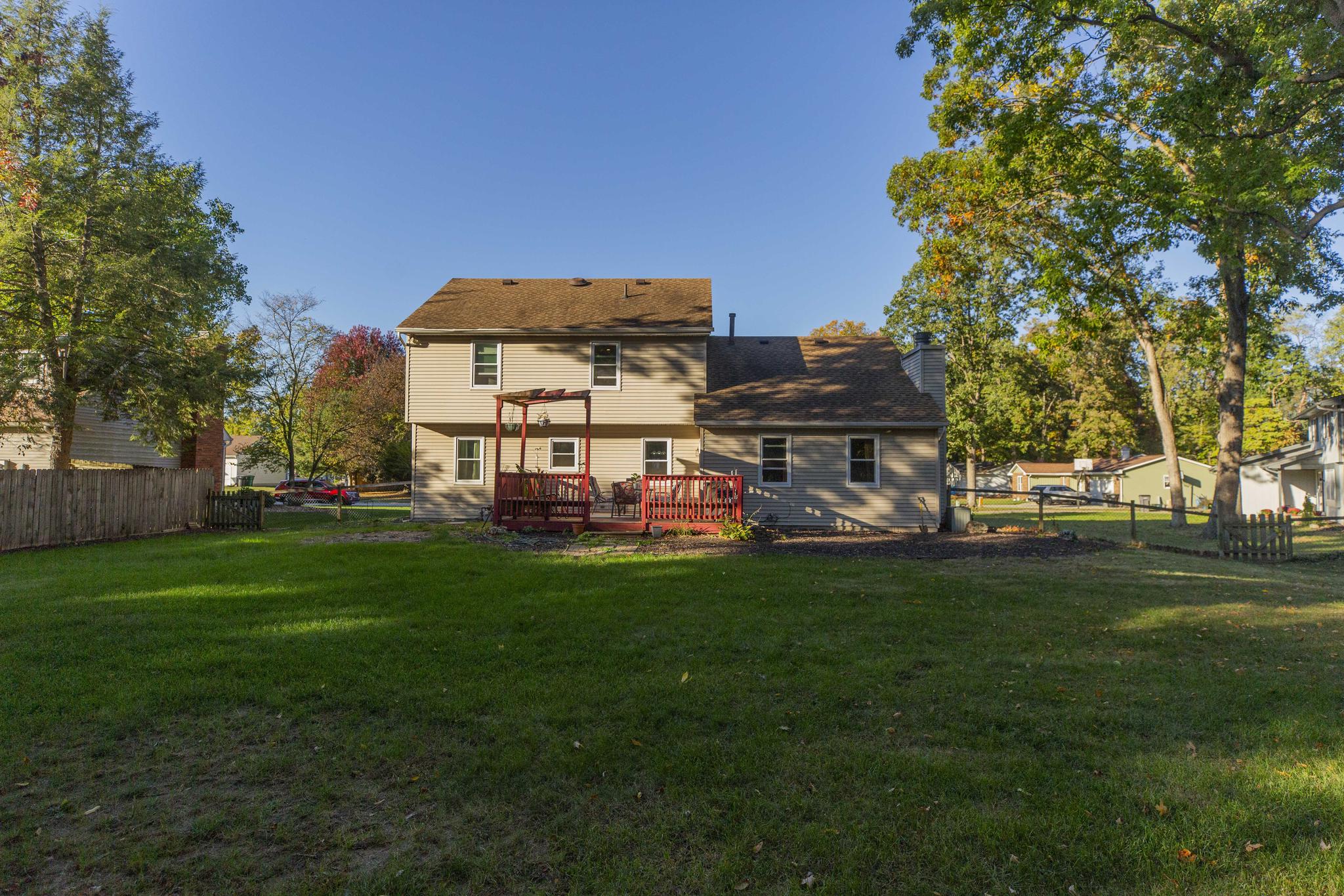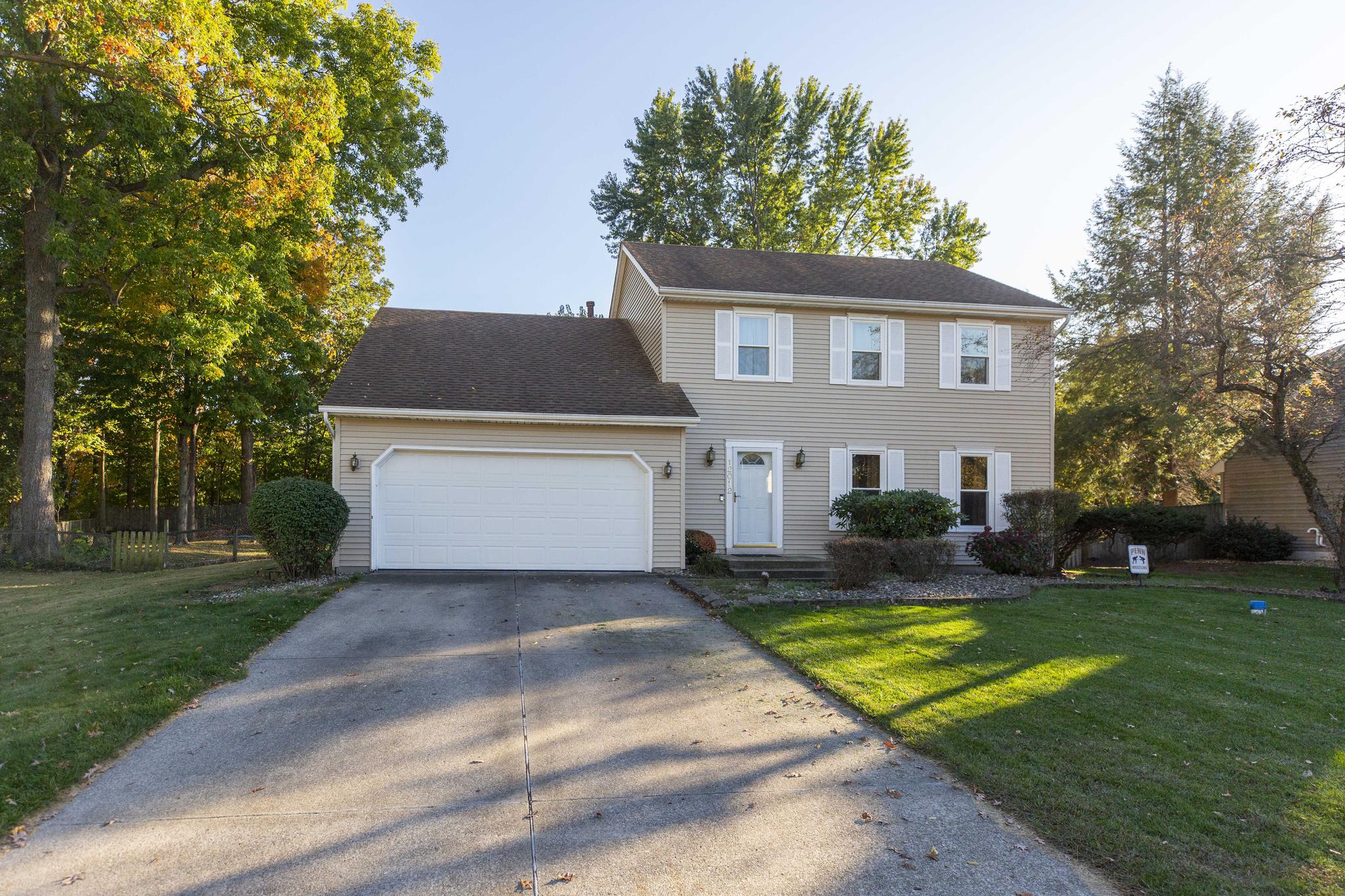 Welcome home to this beautiful 3 bedroom 2.5 bath home in Timberline Trace. Featuring a spacious vaulted family room with a stone-faced wood-burning fireplace, this home offers warmth and charm from the moment you walk in. Enjoy newer vinyl plank flooring throughout much of the main level, along with wood flooring and newer carpet upstairs. The bright white kitchen is equipped with stainless steel appliances. The master bedroom includes an ensuite for your privacy and convenience. The finished basement provides excellent storage space with built in cabinets and a large closet, but also has plenty of space for entertaining. Washer and Dryer are included too! Step outside to a private, fenced back yard with a large storage shed and a deck for relaxing. Schedule your showing today Michiana, this home won't last!